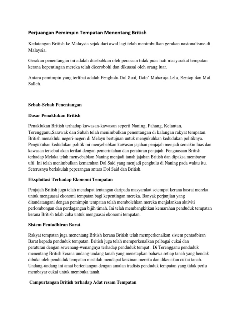 Faktor penentangan pemimpin tempatan terhadap british di tanah melayu. 21 Perjuangan pemimpin tempatan menentang British 2la Apakah yang dimaksudkan gerakan nasionalisme. Perjuangan pEMIMPIN TEMPATAN MENENTANG BRITISHMERDEKA. PENENTANGAN MASYARAKAT TEMPATAN.