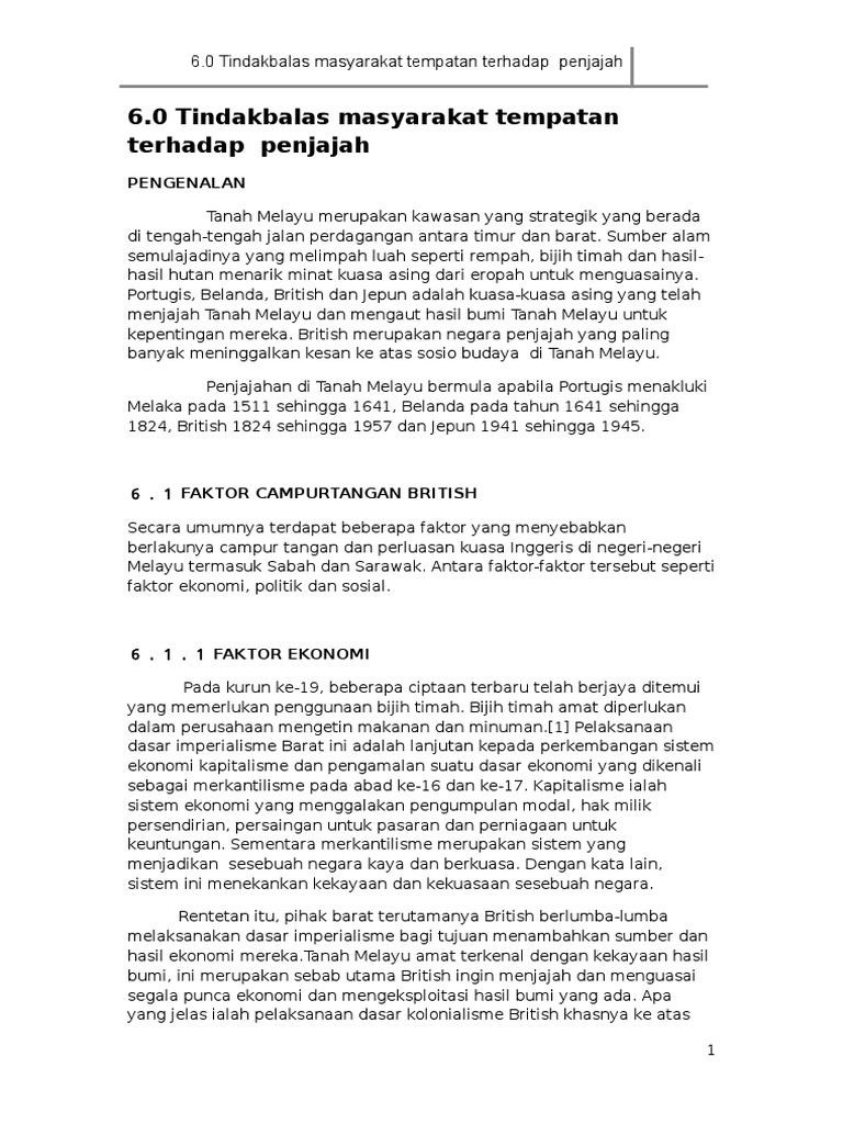 Penentangan Masyarakat Tempatan Terhadap Kuasa Barat - Kekuatan - Kelemahan - Kegagalan Penentangan Masyarakat Tempatan Kesan Penentangan Masyarakat Tempatan - Kesan Terhadap Pentadbiran British - Kesan Terhadap Masyarakat Tempatan Bab ini telah memerihalkan kebangkitan masyarakat tempatan menentang British. Alternatives pBritish berpakat dengan Portugisp. Berikut dikongsikan contoh jawapan kemunculan dan perkembangan nasionalisme sehingga perang dunia.