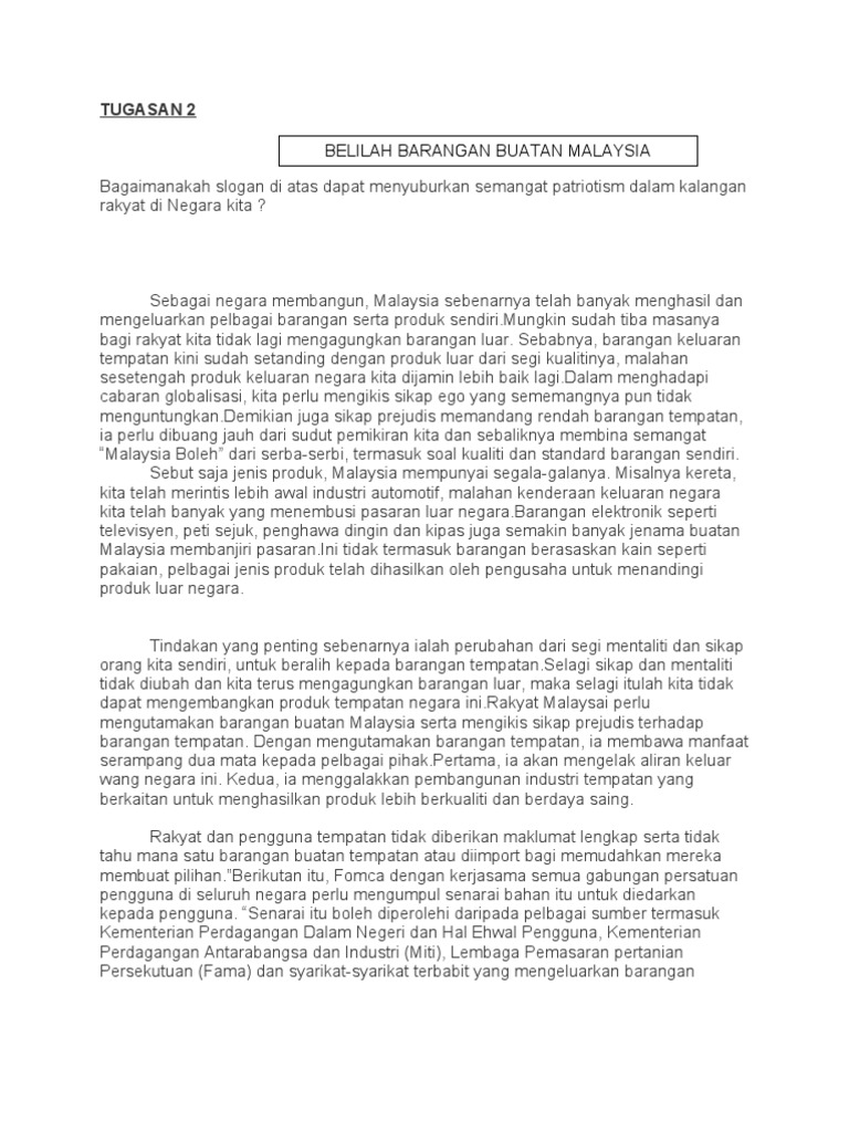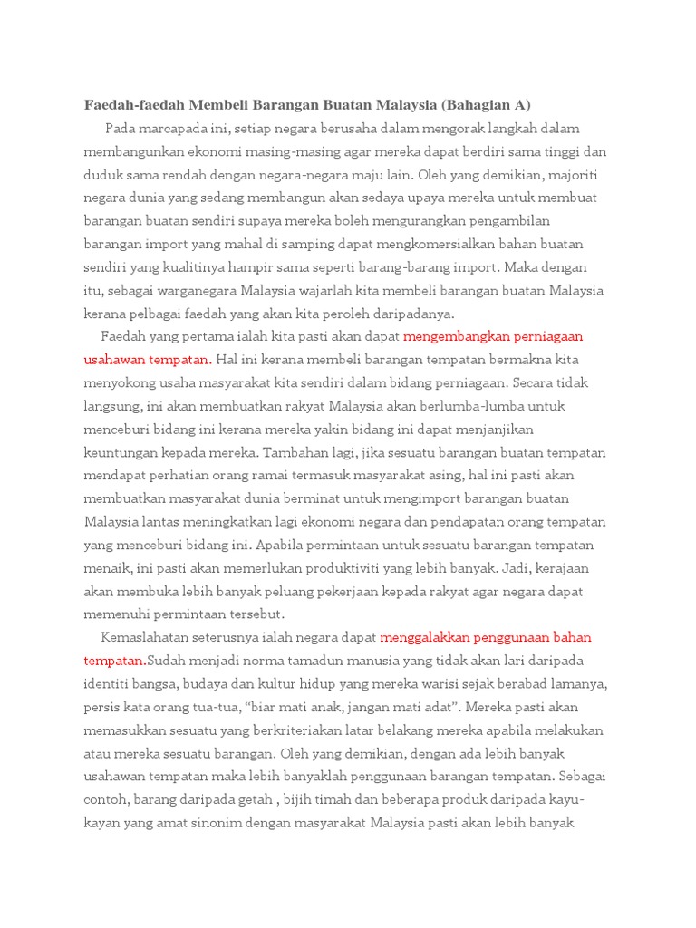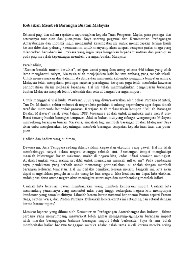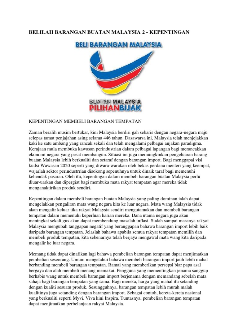 Barangan yang tersilap dihantar atau tidak seperti yang. Esei Belilah Barangan Buatan Malaysia. Konklusinya terdapat banyak kebaikan yang dapat diperoleh apabila kita membeli barangan buatan tempatan.