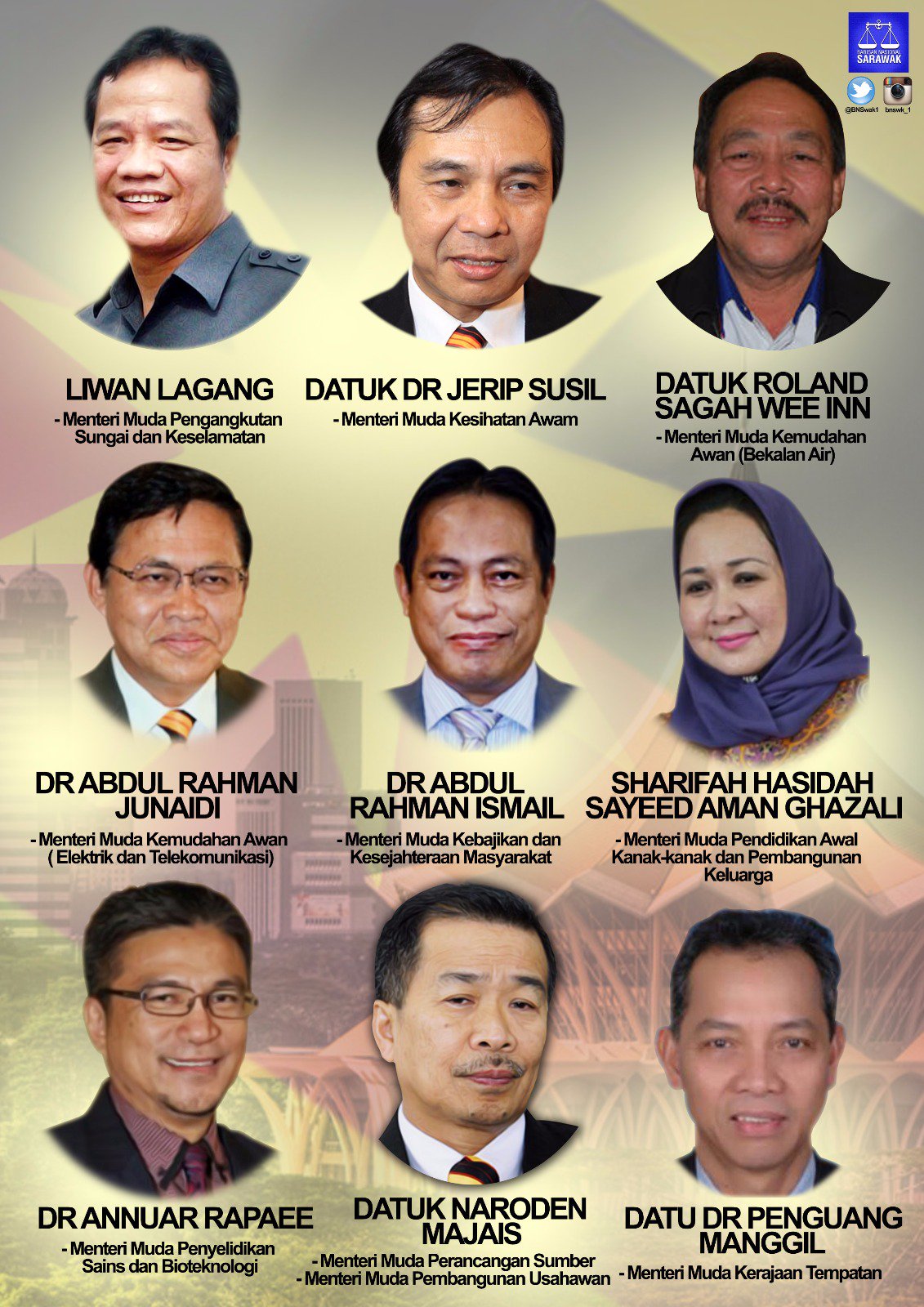 Datuk Liwan Lagang Menteri Muda Elektrik Luar Bandar. Menteri Muda Kebajikan Kesejahteraan Komuniti Wanita Keluarga dan Pembangunan Kanak-kanak. Datuk Peter Nansian Ngusie.