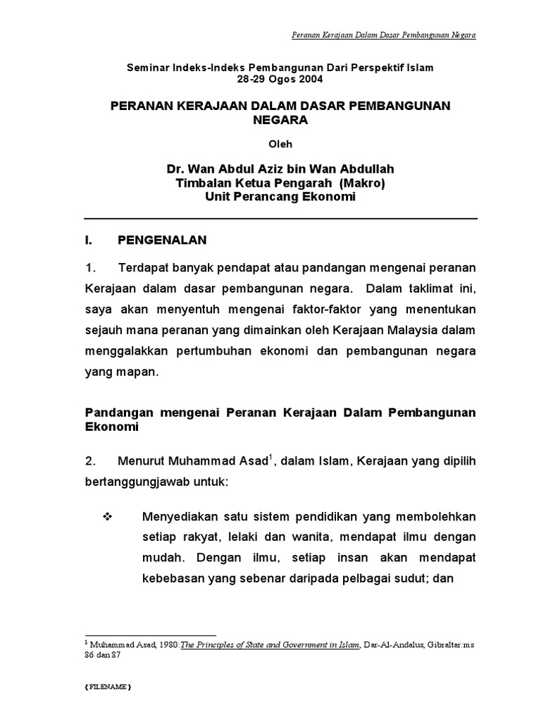 Peranan Kerajaan Dalam Dasar Pembangunan Negara