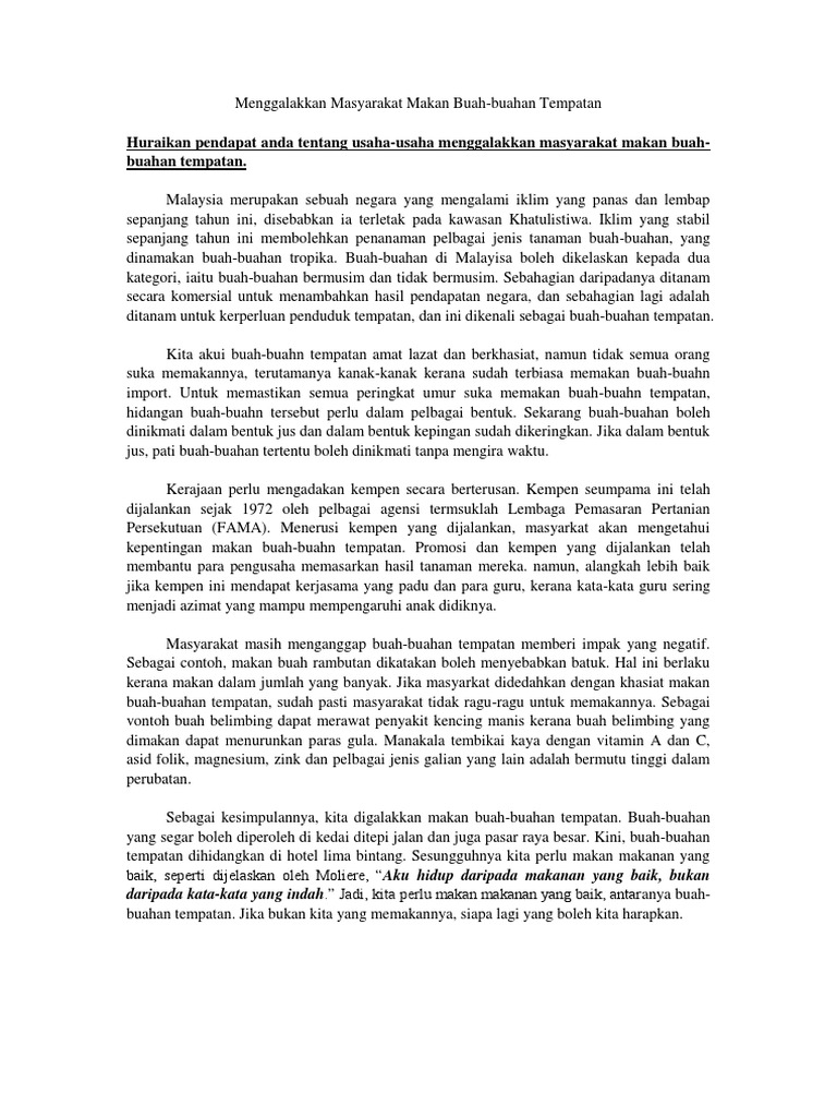Penulisan Karangan Spm Isu Buah Buahan Tempatan
