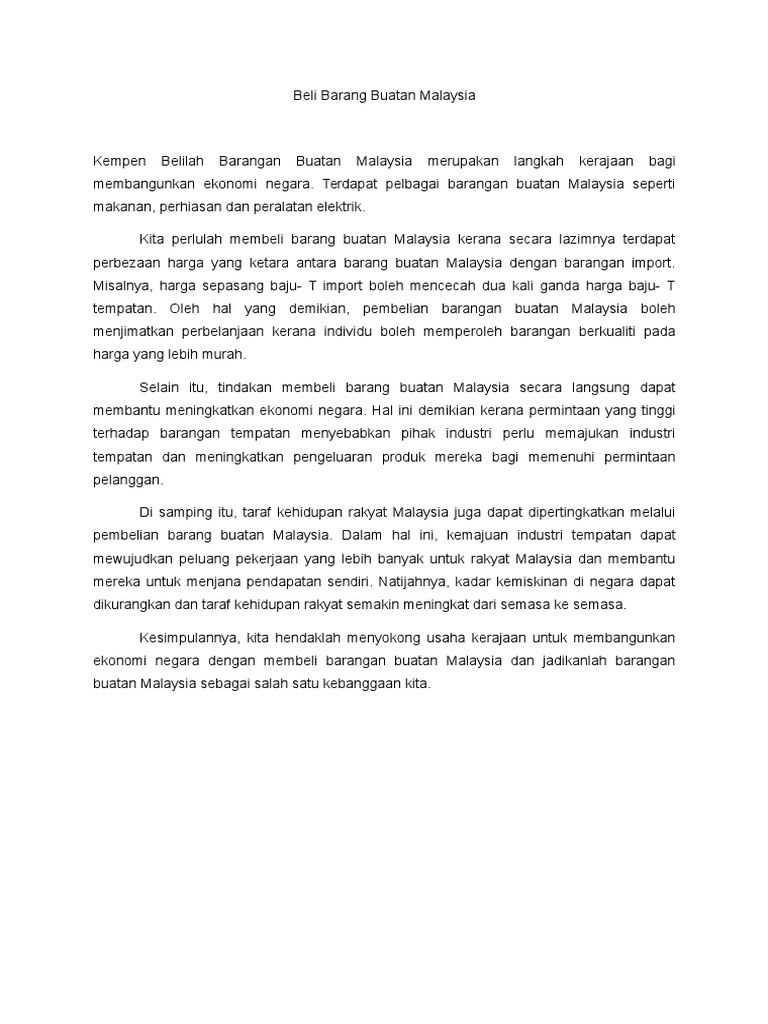 Kepentingan Membeli Barangan Buatan Malaysia Spm